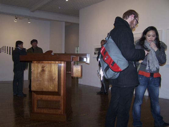 Laurel Farrin’s alternate versions of Mondrian and Malevich paintings and Micki Watanabe Spiller’s transformations of literature into sculptural narratives are whimsical gestures that re-contextualize implied histories into subjective translations. James Huang inverts the functionality or framework of an object into its antithesis or female form while simultaneously commenting on male identity, growth and production. Through the use of photography, Brendan Mulcahy and Anton Sinkewich investigate the subtle intersection of perception and reality by exploiting the minute differences in seemingly homogeneous environments. As a collective entity, Sly converts the art experience into an interactive game that, as Wong expresses, enables the viewer “to knowingly allow artists to set the parameters of that game – whether it calls us to question the art historical canon or poke fun at our own ideas of gender or craft. Sly is an ever-changing stance.”